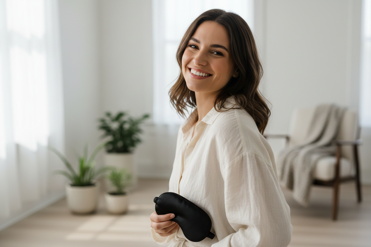 ¿Te gustaría mejorar tu descanso con una diadema que combina auriculares y antifaz?